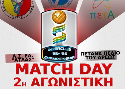 ΠΡΟΣΚΛΗΣΗ Ο Αθλητικός Σύλλογος Εδαφοσφαίρισης ΑΤΛΑΣ σας προσκαλεί στη2η Αγωνιστική του Διασυλλογικού Πρωταθλήματος 2025-2026με αντίπαλη ομάδα τους Πετανκ Πεδίο του Άρεως. Η αγωνιστική θα πραγματοποιηθεί την: Ημερομηνία: Κυριακή 07/12/2025Ώρα Έναρξης Αγώνων: 11:00 π.μ Σας καλούμε