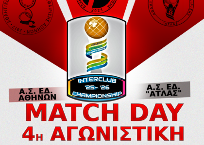 ΠΡΟΣΚΛΗΣΗ Ο Αθλητικός Σύλλογος Εδαφοσφαίρισης ΑΤΛΑΣ σας προσκαλεί στη4η Αγωνιστική του Διασυλλογικού Πρωταθλήματος 2025-2026με αντίπαλη ομάδα τους Α.Σ. ΕΔ. Αθηνών. Η αγωνιστική θα πραγματοποιηθεί την: Ημερομηνία: Κυριακή 11/01/2026Ώρα Έναρξης Αγώνων: 09:30 π.μ Tόπος Διεξαγωγής: Σεράφειο