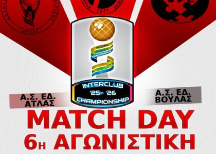 ΠΡΟΣΚΛΗΣΗ Ο Αθλητικός Σύλλογος Εδαφοσφαίρισης ΑΤΛΑΣ σας προσκαλεί στη6η Αγωνιστική του Διασυλλογικού Πρωταθλήματος 2025-2026με αντίπαλη ομάδα τους Α.Σ. ΕΔ. Βούλας. Η αγωνιστική θα πραγματοποιηθεί την: Ημερομηνία: Κυριακή 25/01/2026Ώρα Έναρξης Αγώνων: 11:00 π.μ Tόπος Διεξαγωγής: Άλσος
